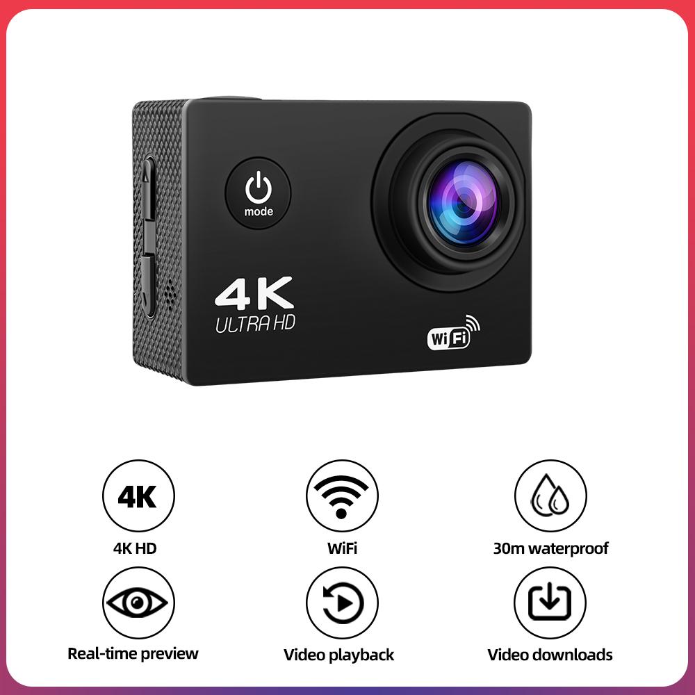 4K WiFi Action Camera 1080P/30FPS, 2.0" Screen, Waterproof, Underwater and Helmet Mount Sports Camera