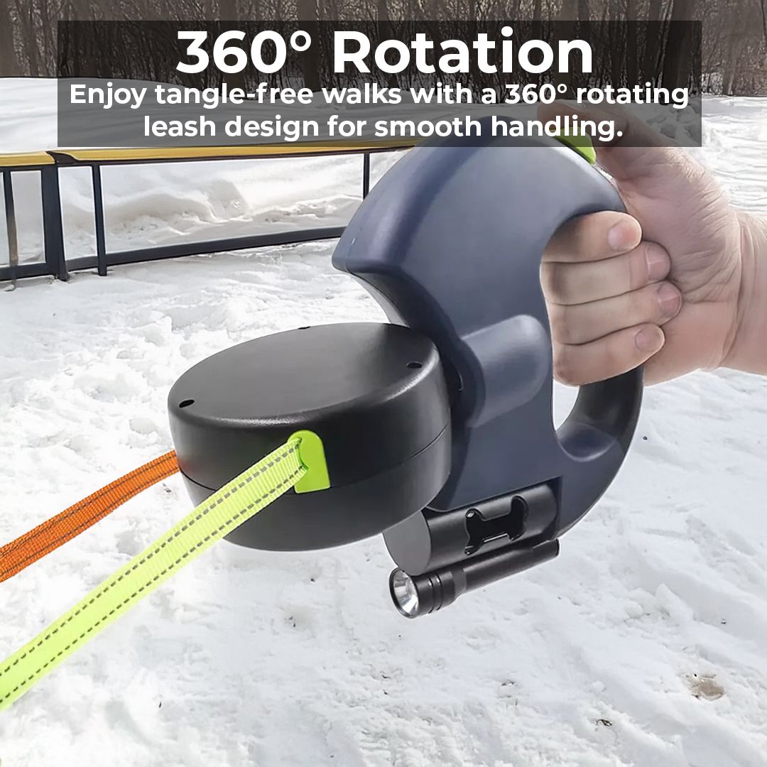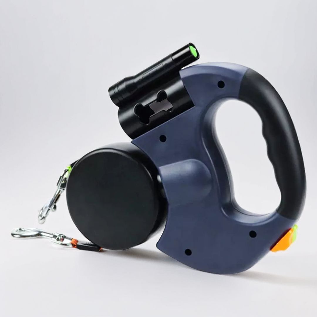 Dual Retractable Dog Leash with Flashlight & Waste Bag Holder