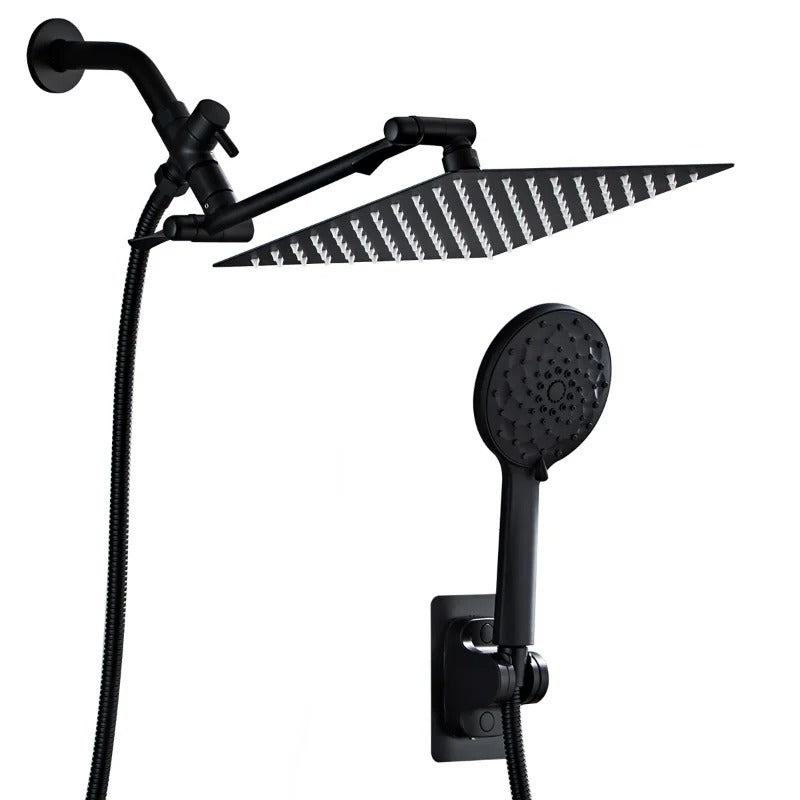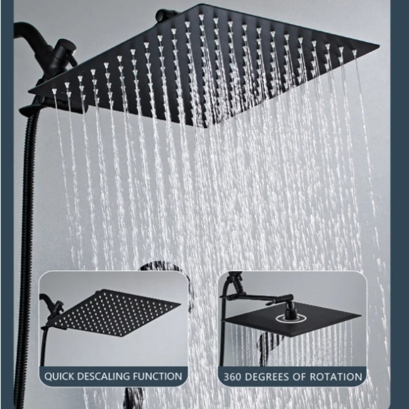 The Luxury 8/10 Inch Black Rain Shower System offers a high-pressure, premium shower experience with a sleek black finish. This set includes a large rain showerhead and a versatile 6-mode hand showerhead, both designed to provide adjustable and customizable water flow. Ideal for modern bathrooms, this shower system combines style and functionality to create a luxurious and invigorating shower experience.