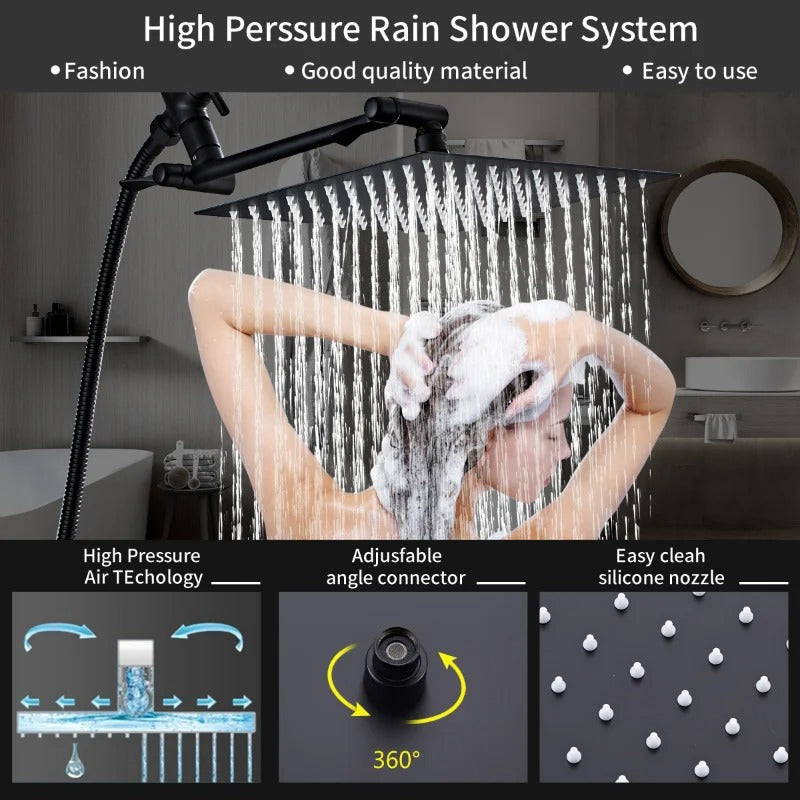 Luxury 8/10 Inch Black Rain Shower System – High Pressure Shower Faucet with 6-Mode Adjustable Hand Showerhead