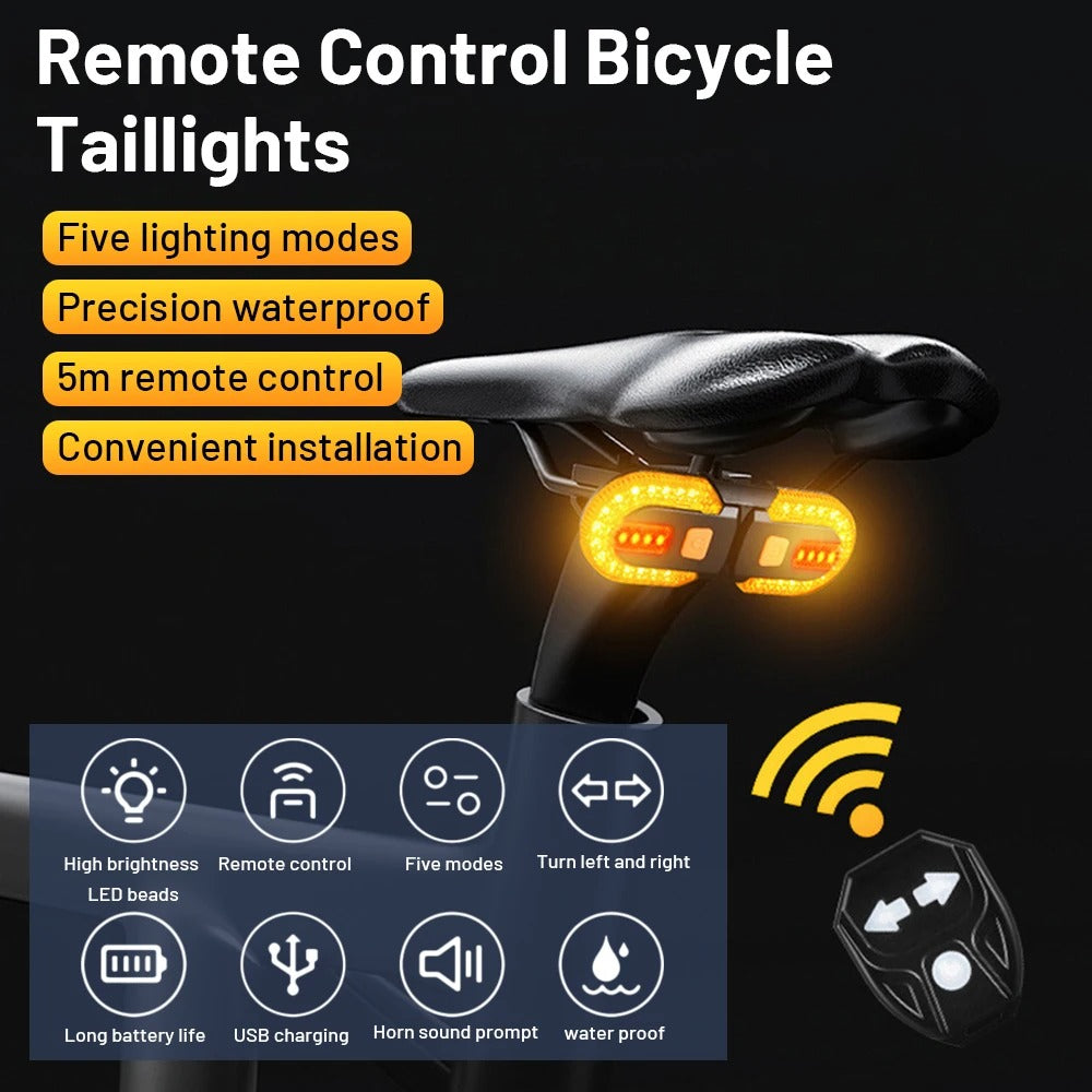 Remote Control Bicycle Taillight – USB Rechargeable LED Turn Signal & Brake Warning Light
