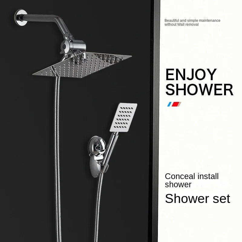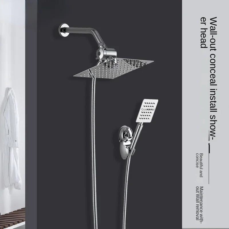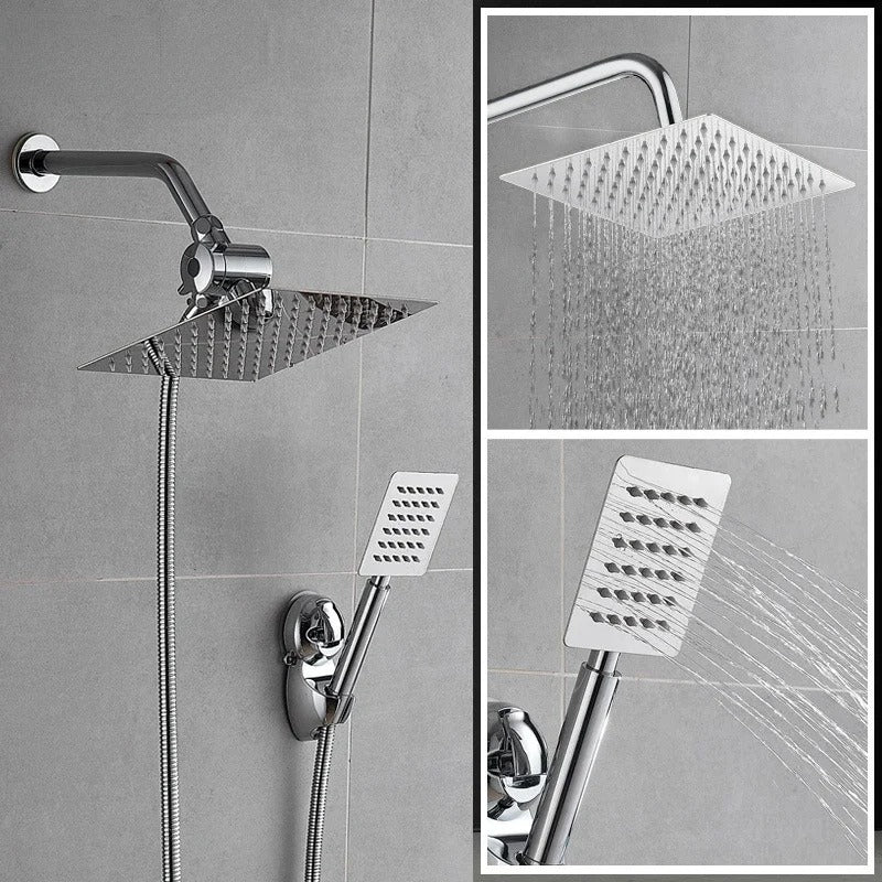 Three-Function 8-Inch Square Rain Shower Set Stainless Steel Pressure Shower head