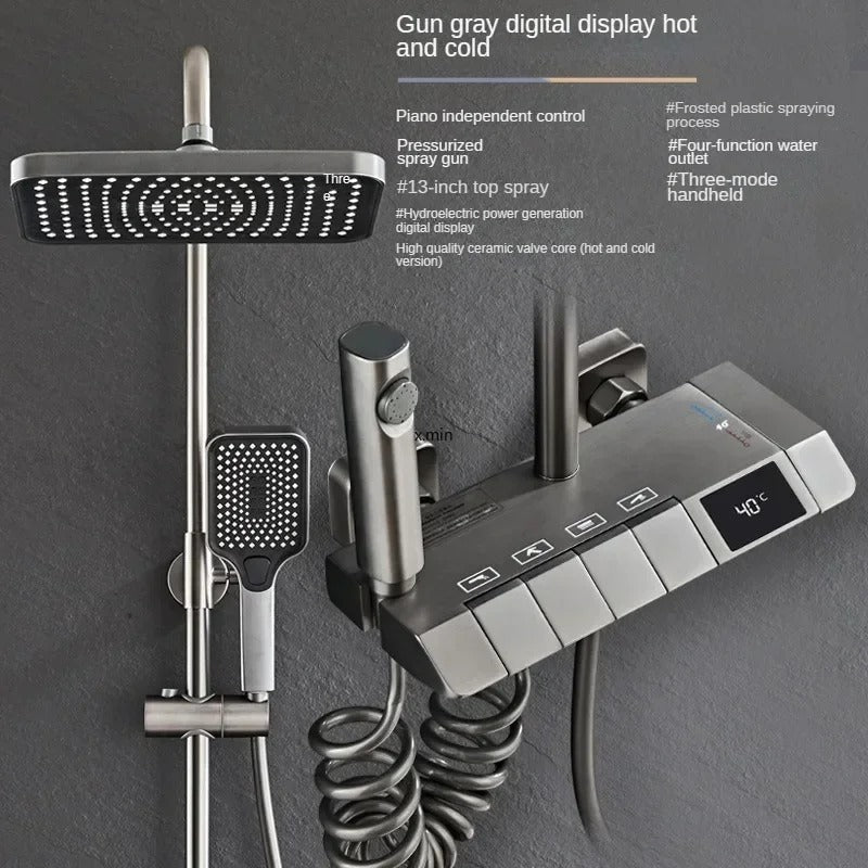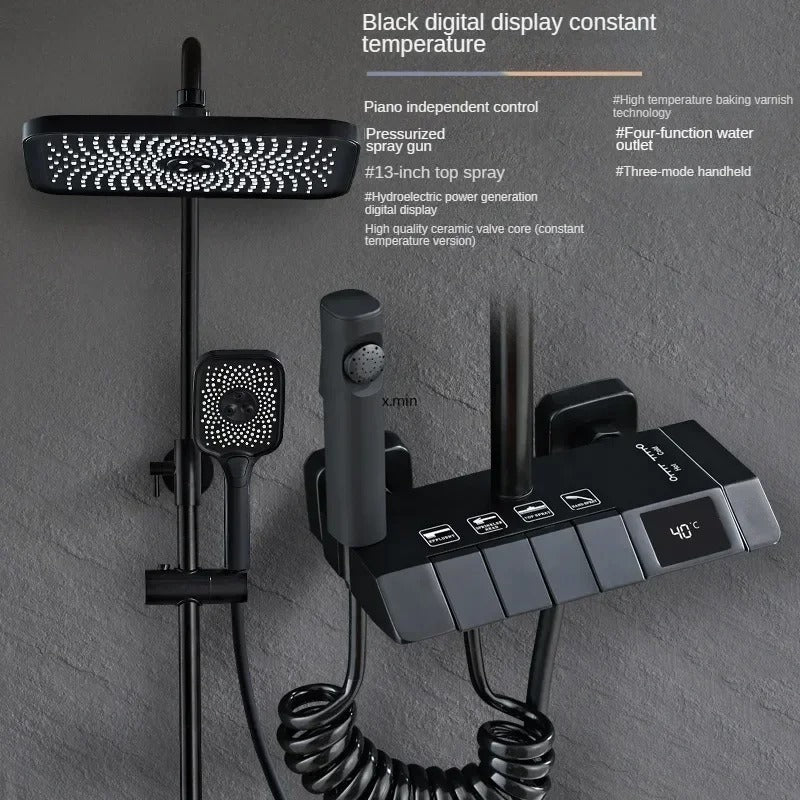 - Digital Display: Provides precise control over temperature and shower modes with an easy-to-read digital screen.